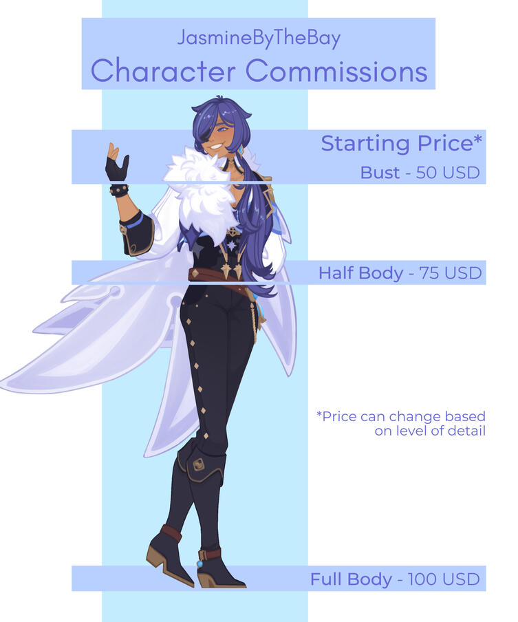 I have 3 open commission slots. Once they are filled, any further commission requests will be waitlisted until a slot opens. I am still open to discussing your commission while waitlisted.